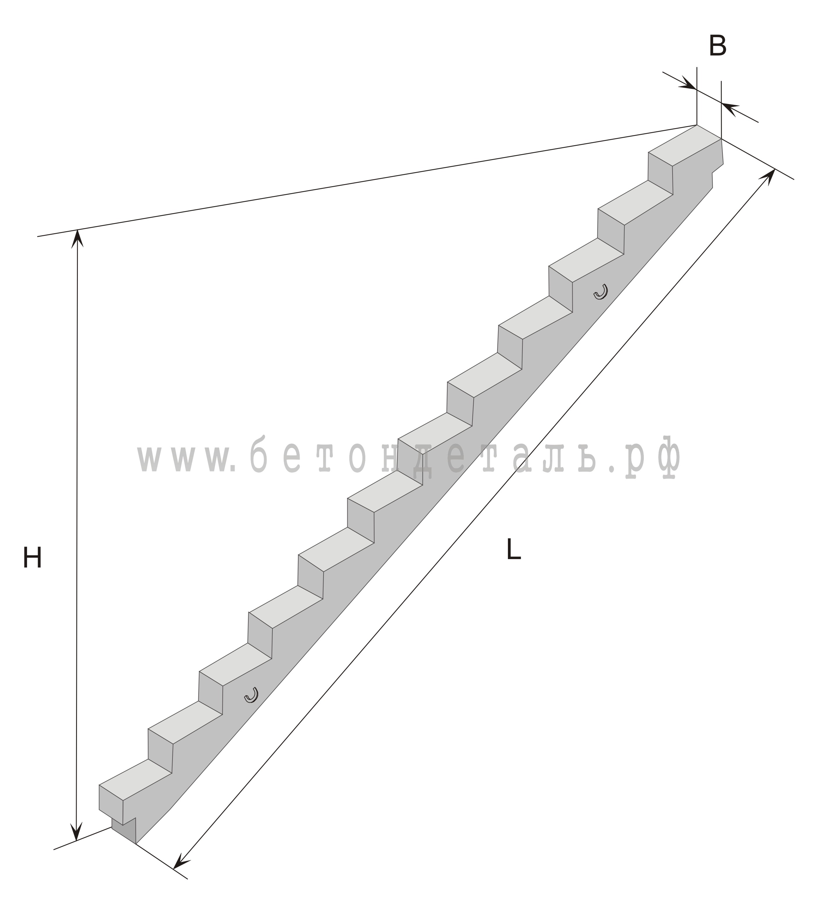 − наличие в ступени закладных изделий или гнезд (обозначаются цифрами);