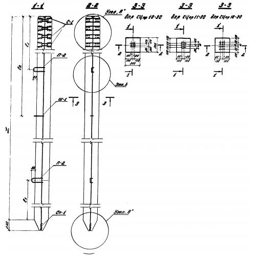 СЦпр 10-30 Сваи квадратного сечения без поперечного армирования ствола по серии 1.011-2.