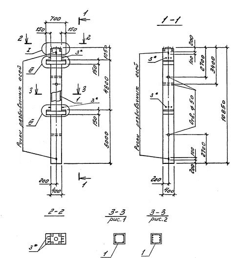 2КНД 48.48    Колонны двухконсольные для нижних этажей (Серия 1.020.1-4).