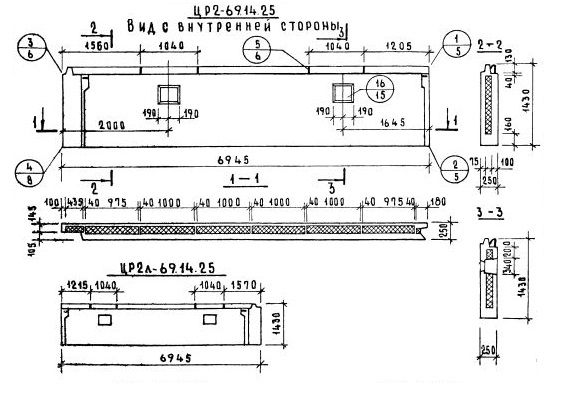Серия 1.117-9    Панели групп ЦР1, ЦР2, ЦР4, ЦР5  толщиной 250 мм.