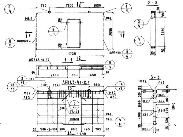 В1.3-47.27.12-2.7 Внутренние стеновые панели (Серия 1.131-1).