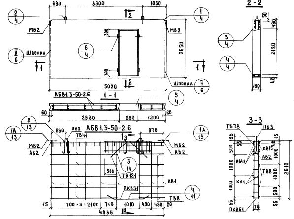 В1.3-50.27.12-2.6    Внутренние стеновые панели   (Серия 1.131-1).