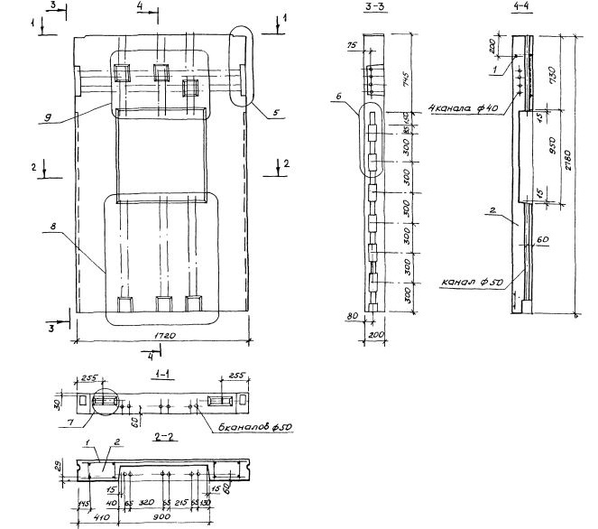 Третья группа включает индексы, обозначающие: первая цифра - вид боковой грани, определяющей примыкание электротехнических панелей к смежным конструктивным элементам (1-вертикальные боковые грани без выступов, 2 - вертикальные грани по всей высоте имеют выступ); две последующие цифры после точки - определяют толщину плиты перекрытия (в сантиметрах), для опирания которой имеется подрезка на верхней грани электротехнической панели; буквенным индексом обозначено положение ниши для электрощита по отношению к длине электротехнической панели или простенка (П-ниша справа, Л- ниша слева), при расположении ниши по центру буквенный индекс не проставляется.
