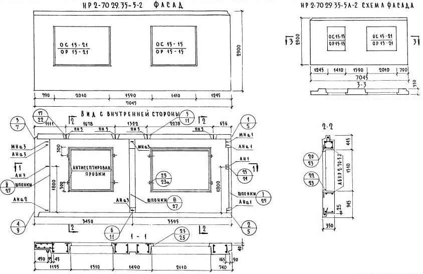 НР2-70.29.35-5-2 Наружная стеновая панель рядовая по Серии 1.132-1.