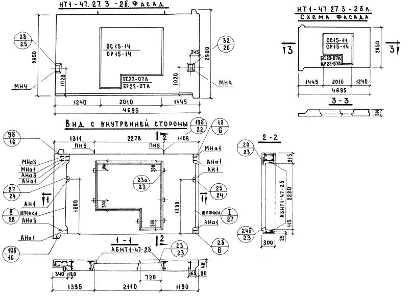 НТ1-47.27.3-2б   Наружная стеновая панель торцевая по Серии 1.132-1.