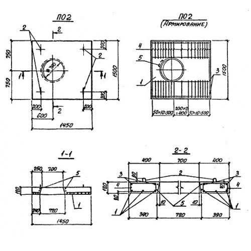 ПО 2 Плиты перекрытия лотков с отверстием Серия 3.006.1-2/82.